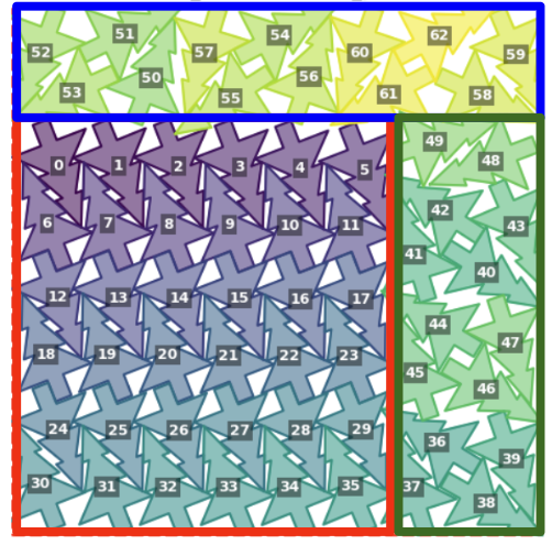 Rectangles from this library were then recursively combined to form larger rectangles and squares. While none of our final results were generated directly by this algorithm, these solutions served as valuable seeds for subsequent steps.