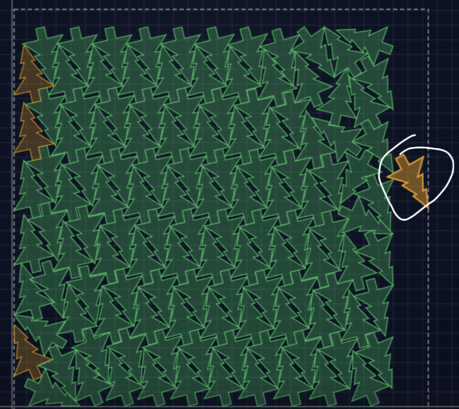 In this contest we are tasked with a traditional (but really hard) bin-packing optimization problem in 2D. The objective is to pack n Christmas trees (with known and fixed shape) into a square box with minimal side length, where n goes from 1 to 200.